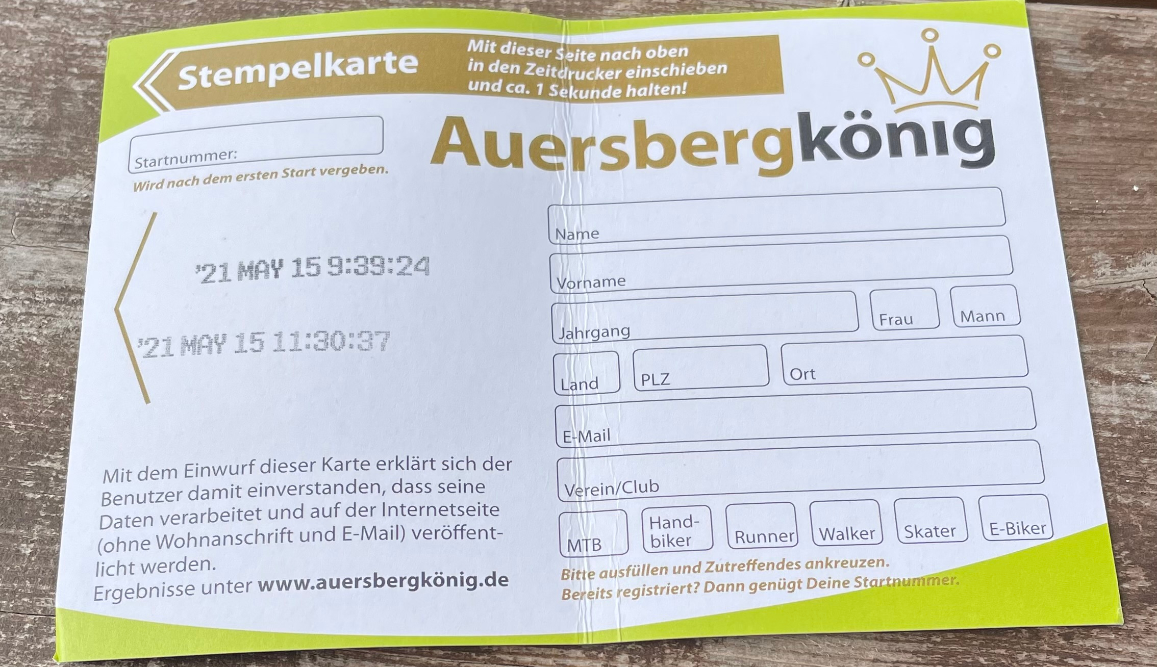 D.h. Teilnehmerkarte aus dem Infopoint nehmen. Ruhe bewahren, alles zurechtzuppeln und zum Schluss stempeln. Dann geht’s auch schon los. Jede Sekunde zählt.