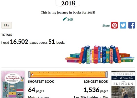 Das war es also. Wieder ist ein Jahr herum. Wieder habe ich viele Bücher gelesen, wenn auch weniger als letztes